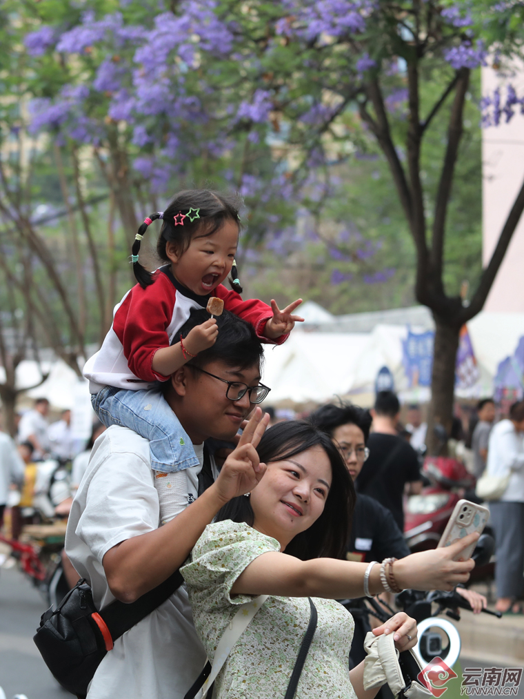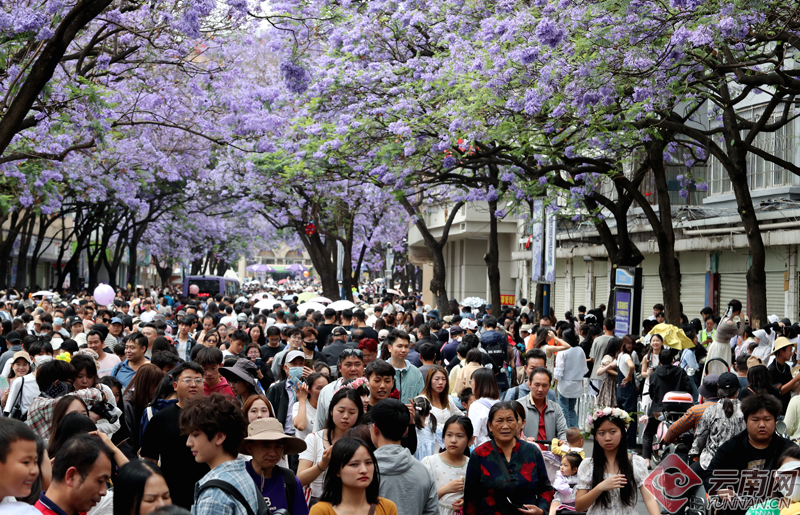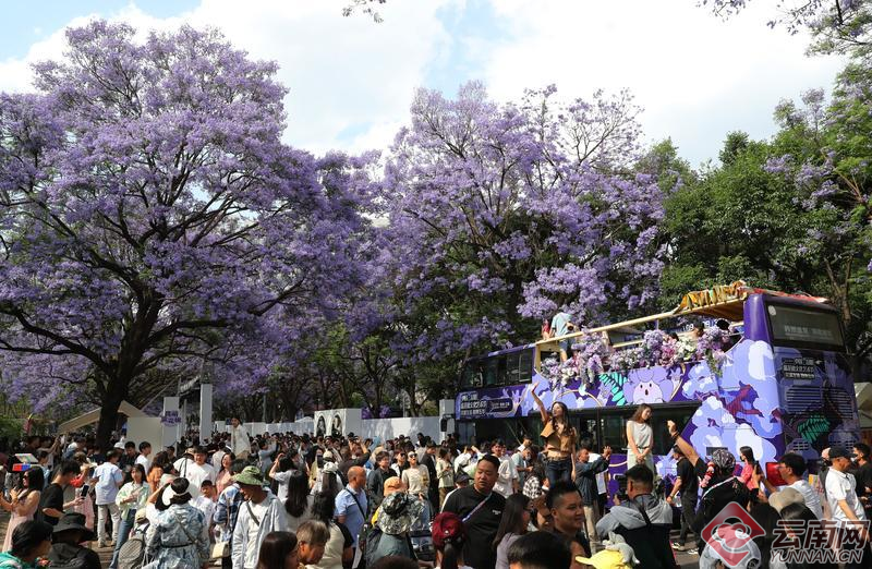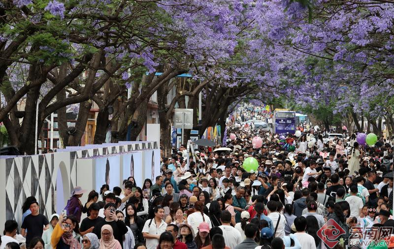 教场中路蓝花楹大道花海人潮,如梦如幻的蓝紫色引得八方游人纷至沓来,就像赶赴一场送别春天迎接夏日的盛宴,就为看着满城春色换做梦幻夏日,春城的春天圆满划上了句号,夏日的浪漫才刚刚开启。(云南网 记者杨峥 黄兴能 见习记者高吴双)