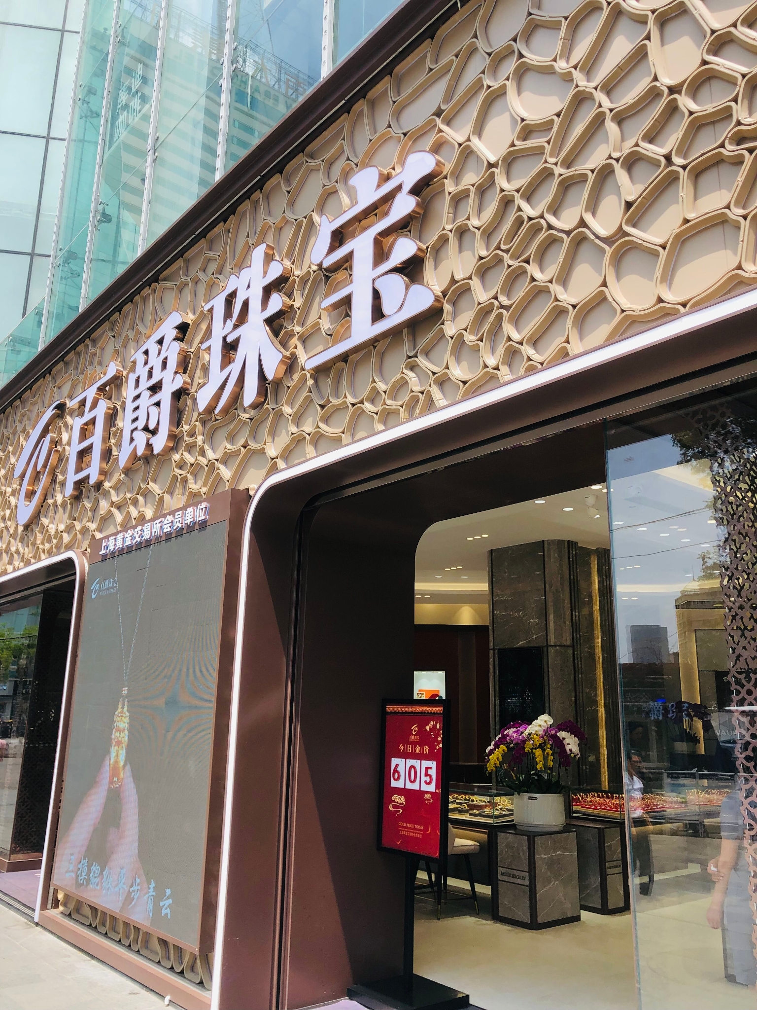 中午12点左右,记者来到南屏街百大新天地百爵珠宝。门口摆放的牌子上显示,今日金价为605元/克。销售人员介绍,605元/克是999足金价格,9999足金价格为635元/克。“五一节前有所下跌,每克降了30元/克。加上节日有活动优惠,五一顾客爆满,很多都挤不进柜台。”隔壁周大福的金价为713元/克,已突破“700”大关。