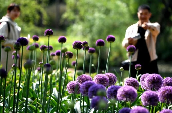 “五一”期间,正值蓝花楹、牡丹、芍药、玫瑰、金鱼草等鲜花盛放,“花卉+旅游”成为盘龙文旅的新亮点。昆明植物园开启“爆花”模式——2024年4月13日至5月15日,以“时光知味岁月青葱”为主题的第六届葱属植物文化艺术展已“葱葱来袭”。植物园东园的中乌全球葱园(昆明中心),集中展示十几个品种,约上千株的观赏性葱属(Allium)植物,以及部分原生种和经济类的葱属植物。随着各类葱花的绽放,中乌全球葱园(昆明中心)“草浓延蝶舞,花密教莺啼”。