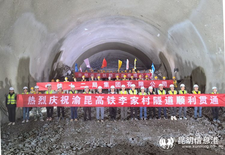 昆明信息港讯 记者上官艳君 5月15日上午,经过建设者900多个昼夜的艰苦奋战,位于云南省昆明市寻甸县的渝昆高铁李家村隧道安全贯通,这条全长3.7公里的隧道,是渝昆高铁云南境内贯通的首条超过3.5公里的隧道。至此,渝昆高铁云南境内63座隧道已贯通14座,10个桥隧重点控制性工程建设进展顺利。