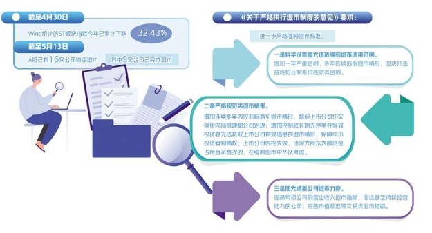 截至5月13日,A股今年已有9家公司完成退市,16家公司锁定退市,54家“挂星”拉响退市风险警报。退市改革持续发威,市场广泛关注。