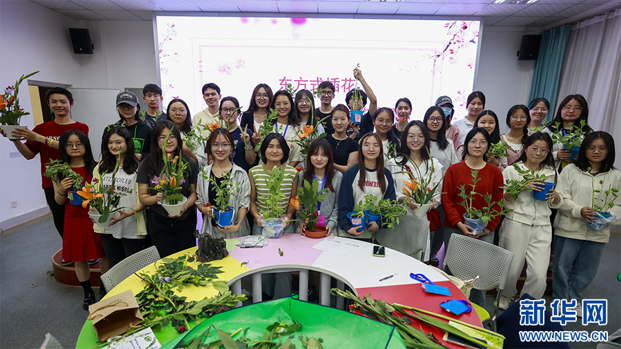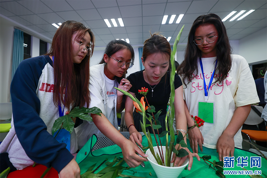 学生们正在插花(5月23日摄)。新华网 刘云 摄