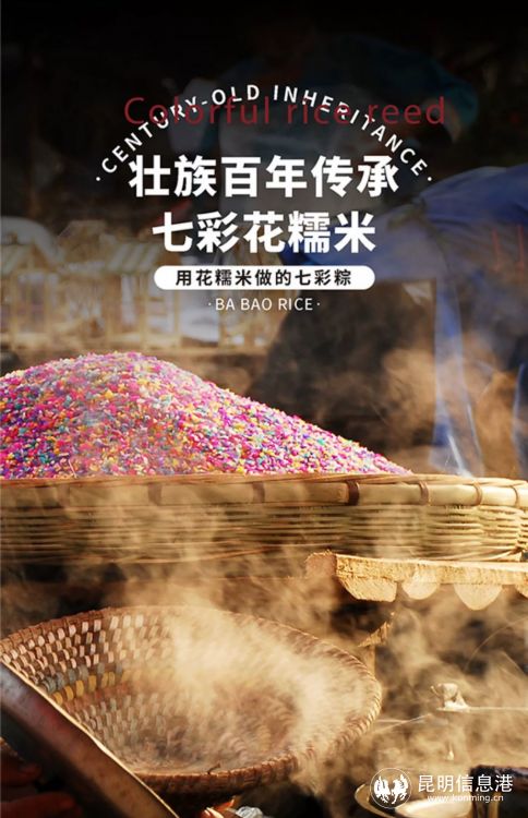 “八宝米”早在明清时期就被列为“贡米”,供皇帝御膳和皇亲国戚享用。随着市场对广南“八宝米”的需求快速增长,广南“八宝米”的声誉不断提高,产品已供不应求,并远销省内外,开发前景广阔。云南八宝贡米业有限责任公司源自“中国八宝贡米之乡”“明清八宝贡米村落集群地”——文山壮族苗族自治州广南县八宝镇,是云南六大名米“八宝贡”商标的持有者。据相关人员介绍:“为进一步传承花米饭的手工制作工艺,弘扬民族特色饮食文化,我们用糯米创新研发七彩花米粽,口味有咸有甜,受到广大顾客的欢迎和喜爱,并远销广州、深圳、上海等地。”从销量来看,七彩花米粽近2周内已售出2万多份,日均销量一千五百多份。
