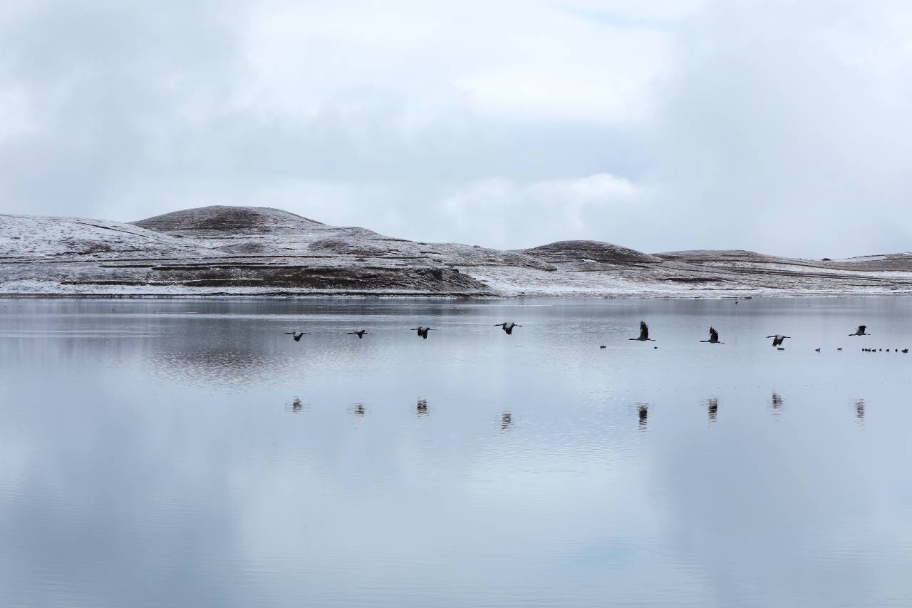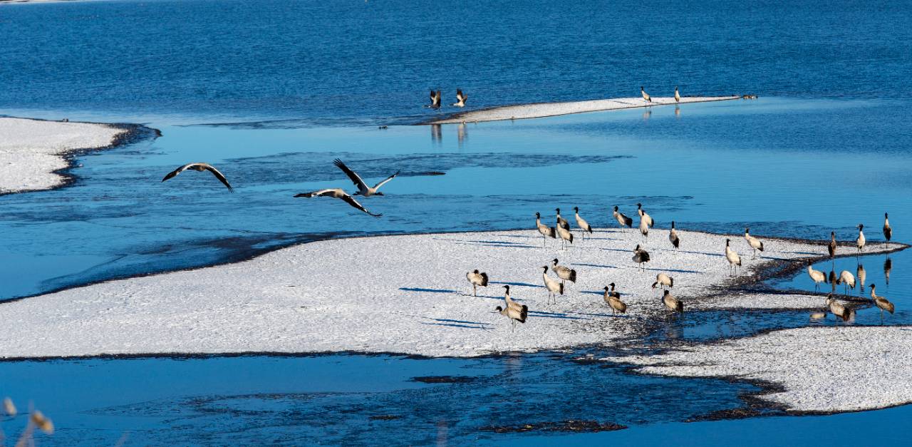 冬日里的大山包,是一个粉雕玉琢的“冰雪世界”,是一幅黑颈鹤与冰雪交相辉映的写意水墨画,亦是一幅清新、灵动的蓝色调写实油画,惊艳温柔了多少时光。