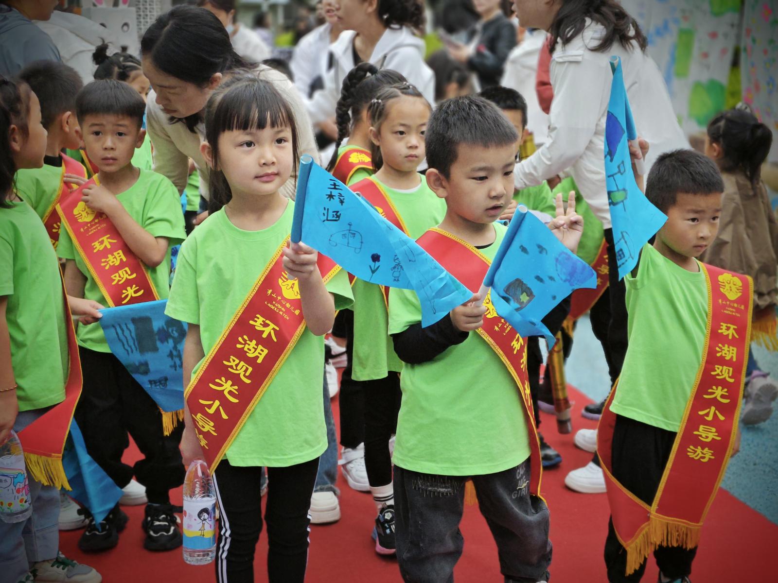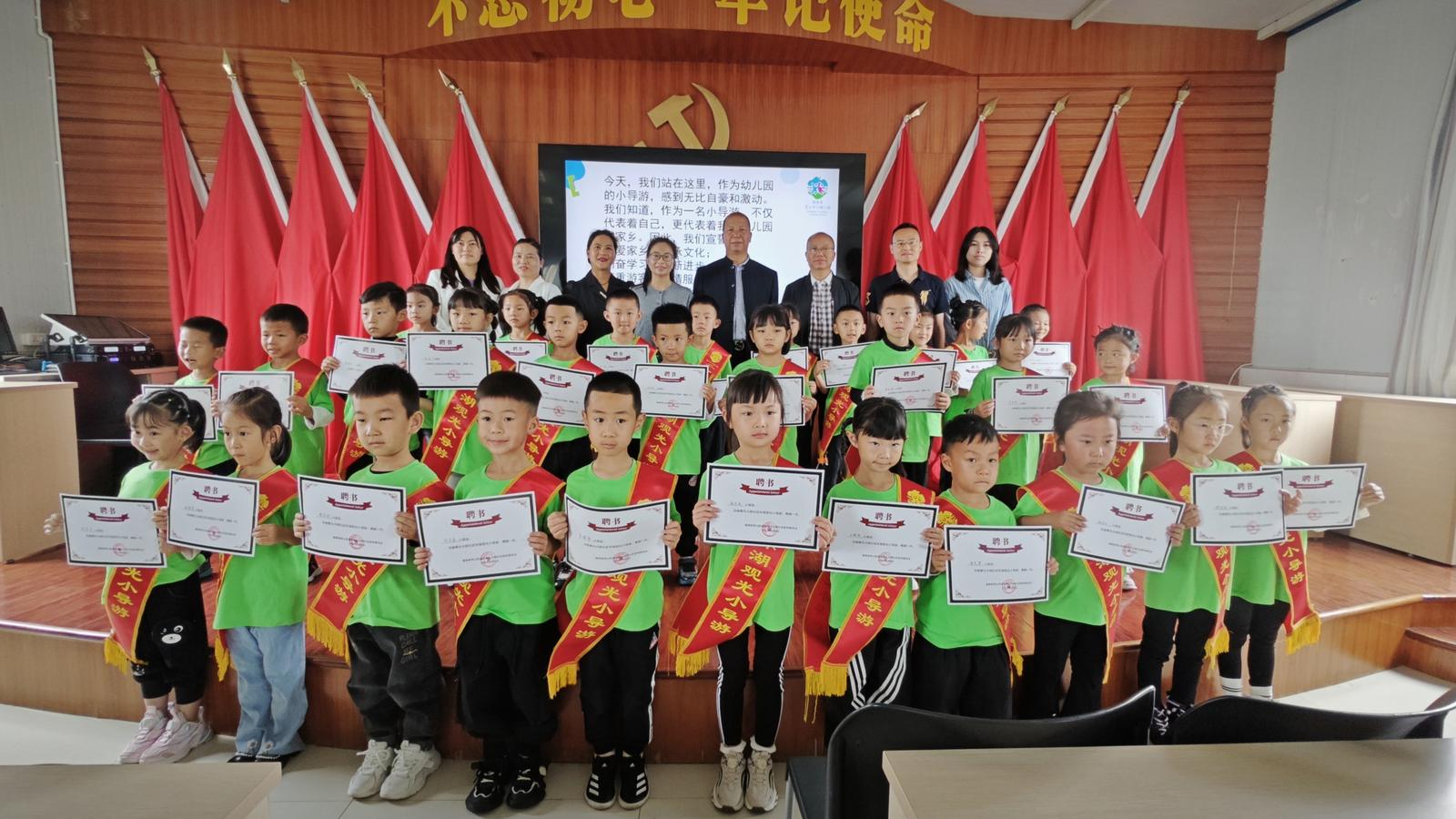 近日,通海县秀山中心幼儿园“‘童’心同行,‘乡’约振兴”环湖小导游项目启动仪式在秀山街道大树社区举行,30名秀山中心幼儿园的萌娃被聘为环湖小导游,“持证”上岗,开启宣传推介美丽通海的首秀。