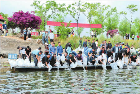 自2012年以来,阳宗海已开展增殖放流活动14次,投入资金300余万元,累计放流优质鱼苗1169.5万尾。随着阳宗海水质持续向好,从2021年开始,为了保护鱼类生物多样性,在放流品种上,增加了适宜放流在阳宗海的两种土著鱼花䱻和云南光唇鱼。
