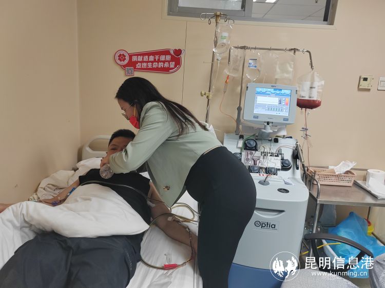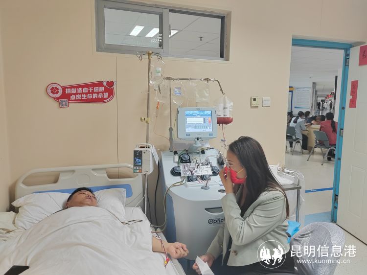 当天,躺在采集床上的小刘谈起此次干细胞捐献,仿佛聊家常一样轻松“造血干细胞捐献其实就是一个漫长的献血过程,在自身不受到任何伤害的情况下,可以挽救一个人的生命,我觉得很开心。我感觉自己像中了彩票一样兴奋。“ 91年出生于云南宣威的小刘,早在十年前就加入了造血干细胞捐献者资料库,小刘年轻时曾在石家庄当兵,目前供职于曲靖一家化工企业。”时间太久远了,我已经记不清入库的具体细节,但我爸爸20多年前也曾经得到过别人的帮助,那时我爸爸急需输血,是陌生人捐献的血挽救了他的生命,目前能有这样的机会去救助别人,我很开心!“小刘表示,希望能有更多的人加入到造血干细胞捐献的志愿服务队伍中来,帮助更多的血液病患者重获新生。