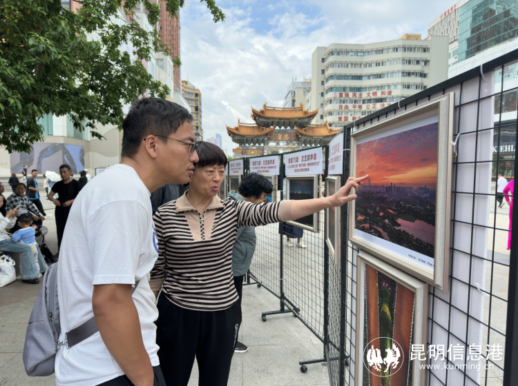 参展作品吸引了很多市民驻足观看,三五成群或静静观赏,或指点品评交流,或拿出手机拍摄留念。市民张先生在一副展示昆明滇池国际会展中心的作品前欣赏良久,他说“我最喜欢这幅作品。首先拍摄主体滇池国际会展中心展示了昆明对外开放的形象,第二是很难有人拍摄到这么好的全景,特别是在云彩和场馆全景的对比下,非常鲜明,一句话很漂亮!”