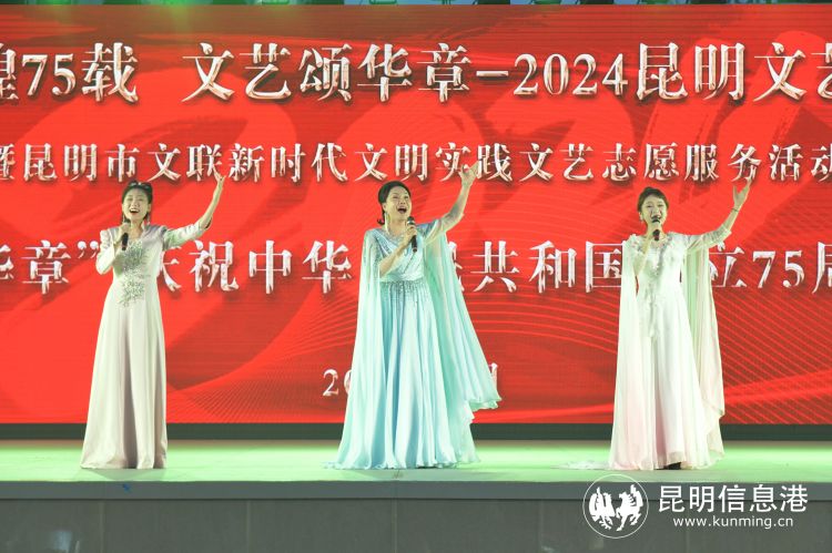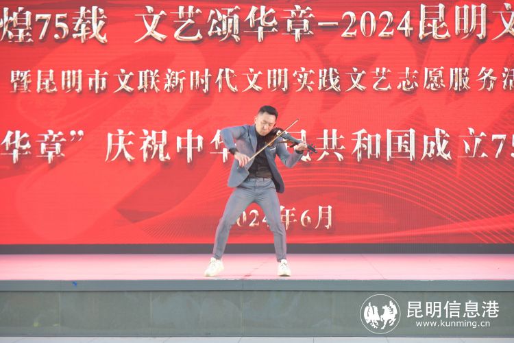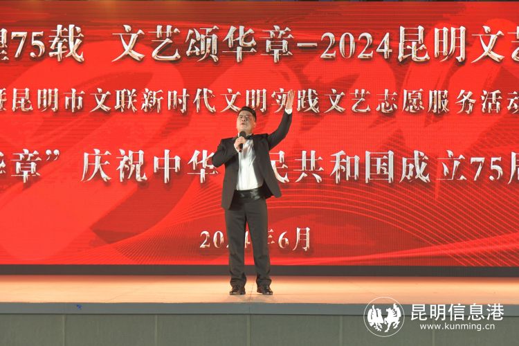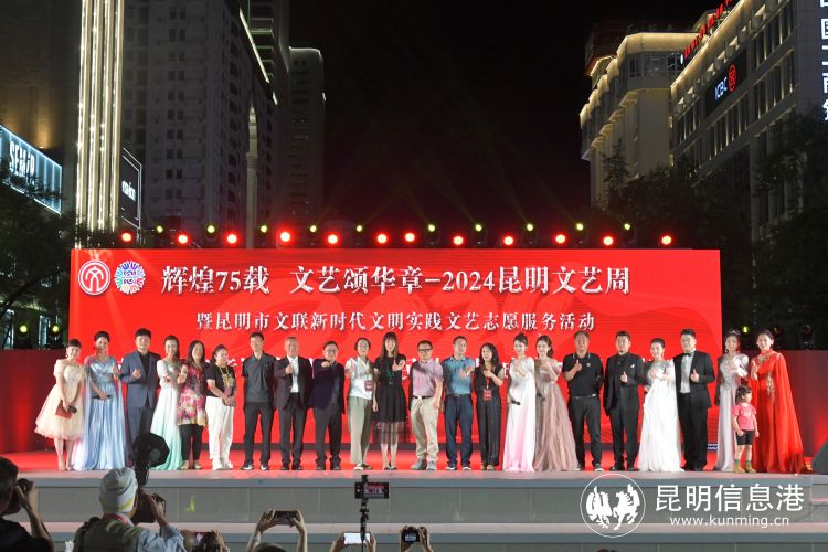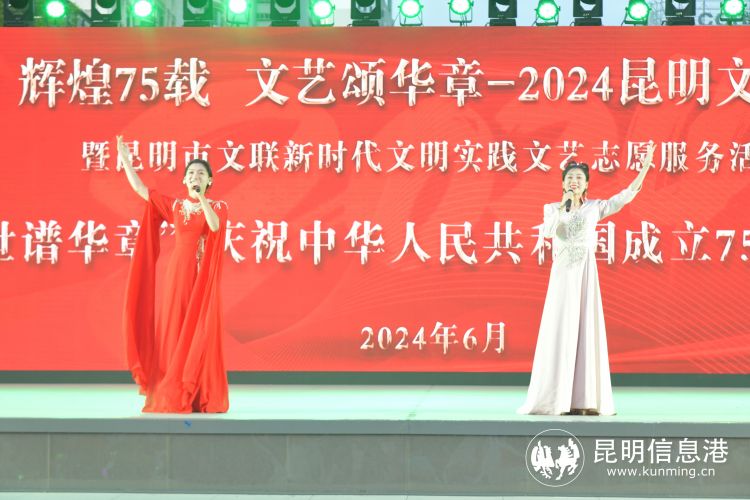 昆明信息港讯 记者王奕然 张玉 6月22日晚,“辉煌75载 文艺颂华章” 2024昆明文艺周“盛世谱华章”庆祝中华人民共和国成立75周年音乐会在南屏步行街广场举行,音乐艺术家们登台献唱多首经典歌曲,以饱满的爱国主义情怀歌颂伟大祖国。