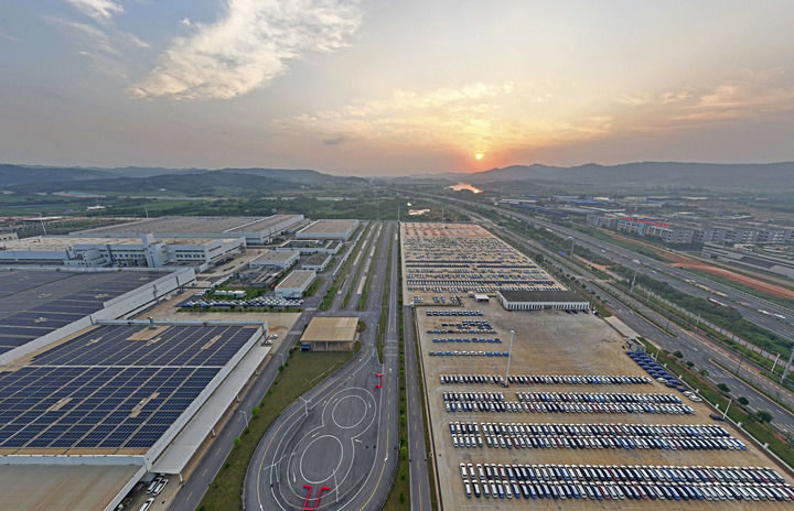 广西南宁市伶俐工业园区新能源汽车生产基地(2024年5月14日摄,无人机照片)。新华社记者 周华 摄