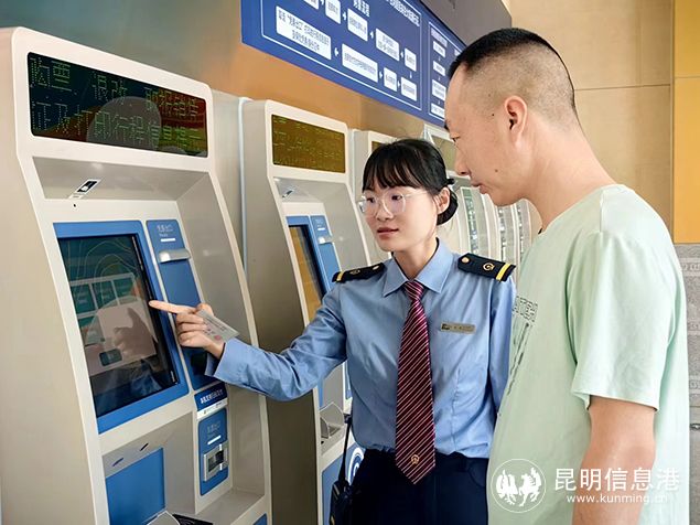 普者黑站客运员为购票旅客提供引导服务。通讯员叶恒 摄