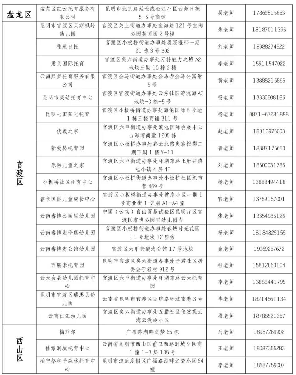 根据《中共昆明市委 昆明市人民政府印发<关于优化生育政策促进人口长期均衡发展的实施方案>的通知》(昆发〔2023〕20号)和《昆明市人民政府办公室 关于促进3岁以下婴幼儿照护服务发展的实施意见》(昆政办〔2020〕71号)等文件要求,为促进昆明市婴幼儿照护服务规范化发展,积极推进托育机构备案工作,加强社会监督管理,便于家长就近选择,现将95家场地设施、环境卫生、人员配备、安全管理等各项指标符合要求,通过审核,备案合格的昆明市2024年度托育机构“白名单”(详见附件)予以公布。