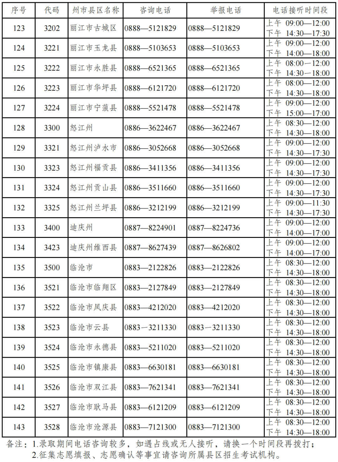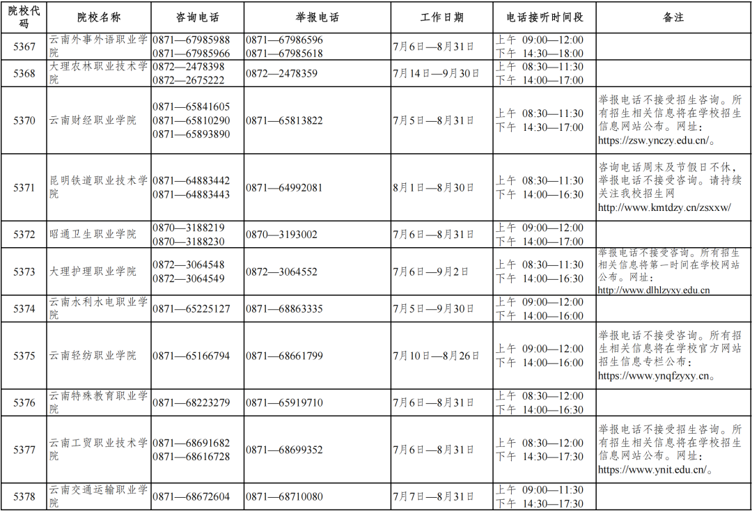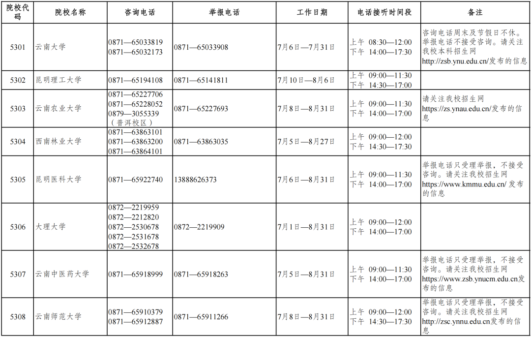 云南省2024年普高招生录取咨询及违规举报联系方式公布