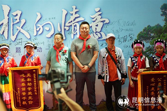 周林夫妇,公司总裁周钒,分别为来自怒江大峡谷福贡县腊竹底中心学校、巍山县周林春苗学校品学兼优的30多名少数民族孩子颁发了奖学金,并为北京周林频谱科技有限公司昆明夏令营开营授旗。