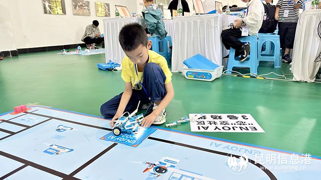 “这个比赛开阔了我的大脑,让我对科学更感兴趣,也提升我将来投身科学的积极性。”来自昆明呈贡中华小学白龙潭校区四年级的学生周洳吉边做调试边说。