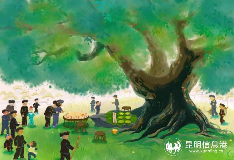 如果说冉里和小伙伴夜晚去梯田捉蚂蚱已经足够离奇了,那么冉里的爸爸正儿八经地举行“吓唬虫子”的仪式就更神奇了。尽管冉里在现场看着有点将信将疑,但是不能否认冉里内心的虔诚。冉里的爸爸还有“请木头脱衣裳”“请田神回家吃饭”“把稻谷娘娘请回家”等天真烂漫的仪式,还有坚定信奉并保护挨刀树的信念,这些无不体现了一个哈尼族人发自内心、深入骨髓的虔诚。