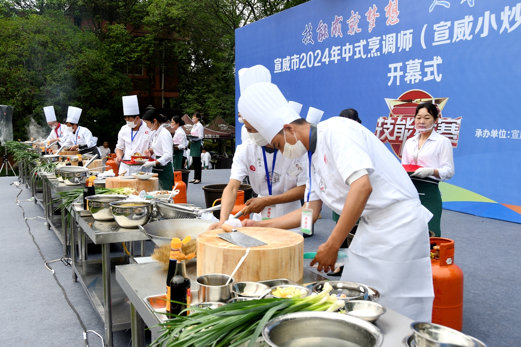 7月28日,宣威市开展了2024年中式烹调师(宣威小炒)职业技能竞赛,来自全市餐饮业的38名烹饪选手汇聚一堂,在同台比拼中推动宣威特色美食融合创新发展。
