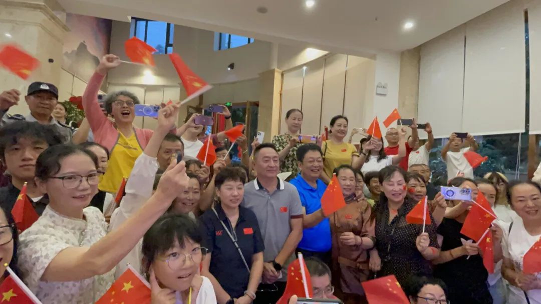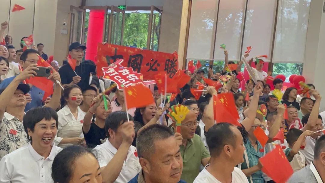 亲友团得知杨昊在29日下午将参加巴黎奥运会后,大家不约而同来到杨昊家中等候观看。在杨昊家中的观看厅里,“杨昊加油!你是红河的骄傲”的横幅悬挂在墙上,亲友团一边挥舞着小国旗,一边喊着“杨昊加油!”的口号。杨昊与队友练俊杰每完成一次跳水,现场便会爆发出激烈的掌声和欢呼声。