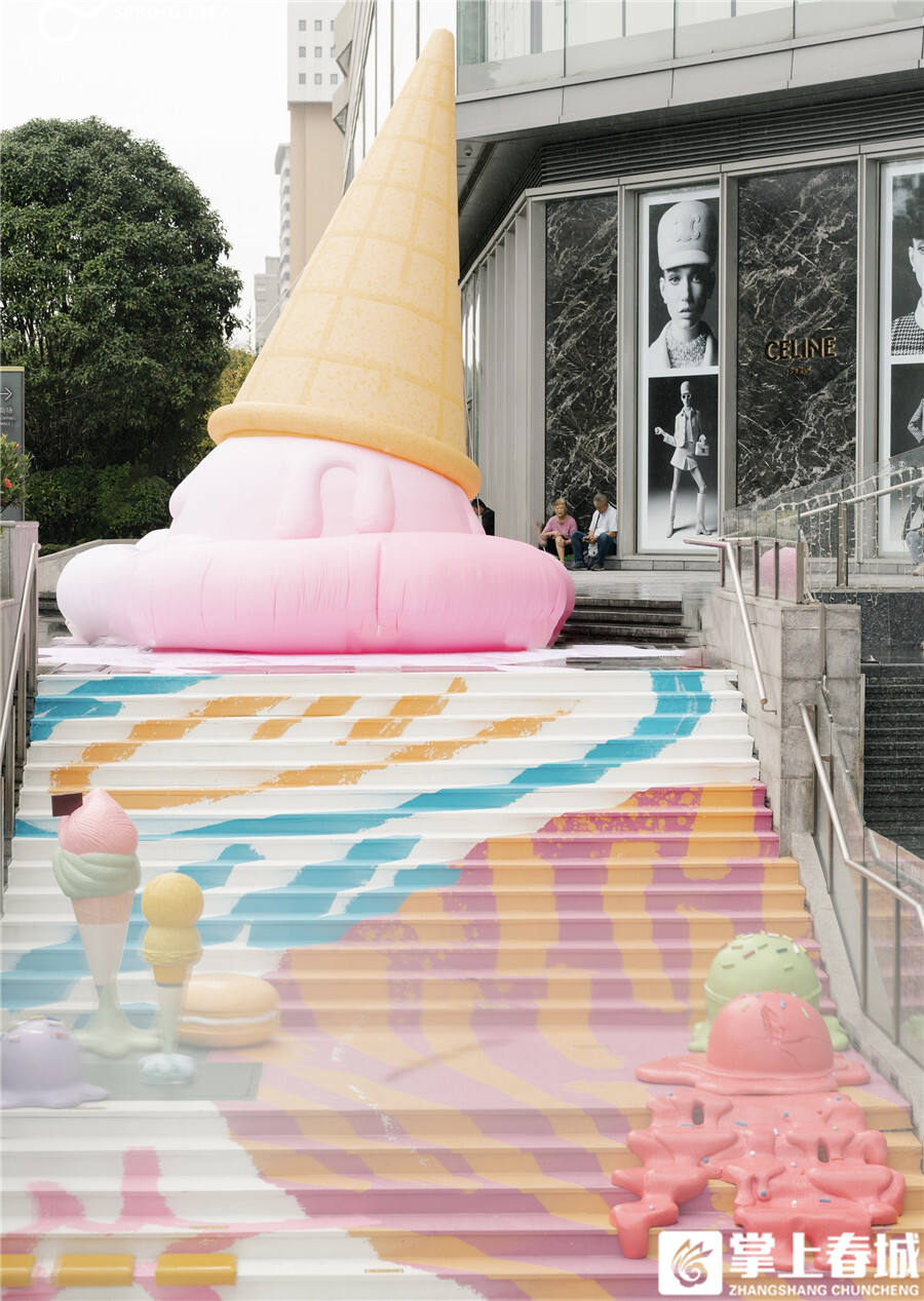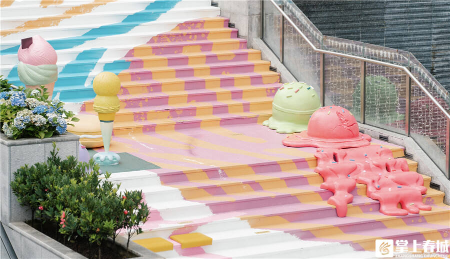 “火遍全国的冰淇淋地标,昆明也有啦!” 近期,昆明恒隆广场外围再添一处不可错过的打卡地——冰淇淋主题楼梯装置,以独特的创意与夏日主题的色彩设计,迅速成为市民和游客们争相打卡的地标。