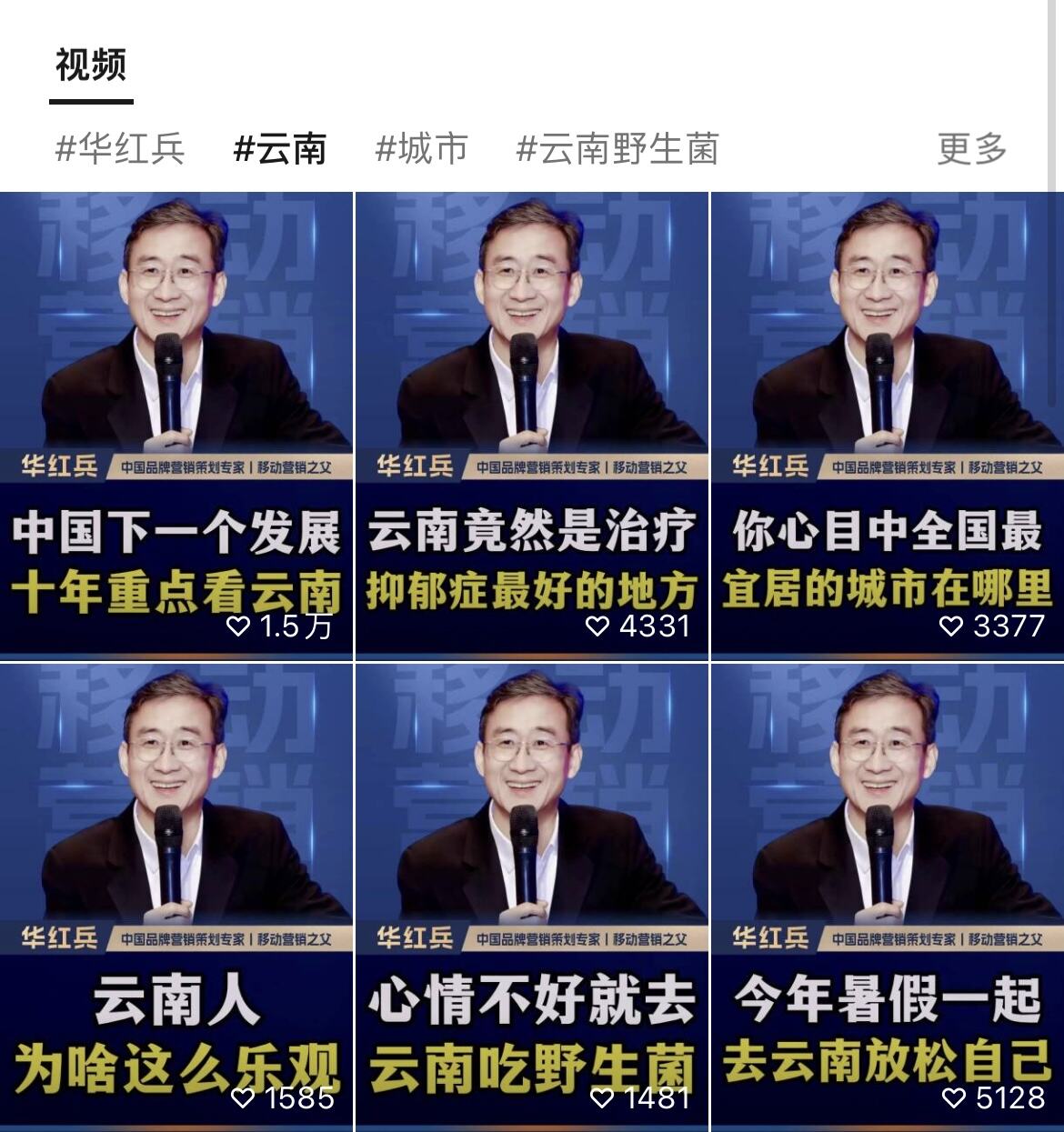 打开@华红兵谈大运河微信视频号,标签#云南 #云南野生菌分类,关于云南的视频就有20余期。访谈中,华红兵语气里藏不住对昆明的偏爱:“到了昆明,才发现昆明人是生在蜜罐里、长在菌子下,每天都铺满了阳光与快乐,太幸福了。”他认为,得益于四周环山、盆地坐落的地理环境,昆明四季如春,在这里,可以畅享温暖的阳光、新鲜的空气和繁花似锦的景色,昆明被誉为“春城”名不虚传。