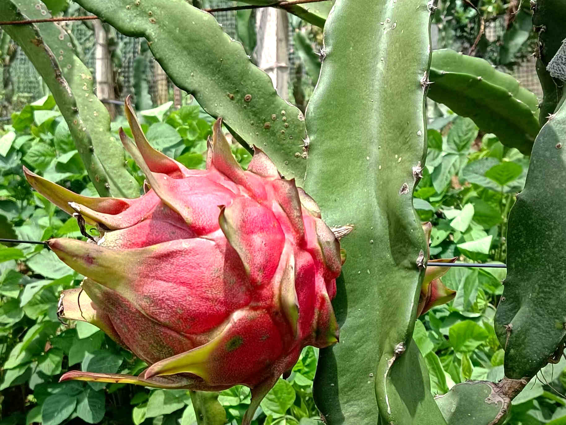 郭大寨乡属亚热带季风气候,由于生态良好、水源洁净、光照充足,海拔较低的河谷区域为火龙果提供了适宜的生长环境。大田坝种植的火龙果皮薄肉厚、口感细腻,加之成熟时间较早,在本地市场上颇受欢迎,被大家亲切地称为“郭大寨人自己的火龙果”。
