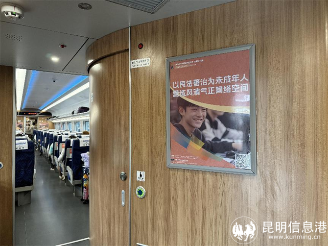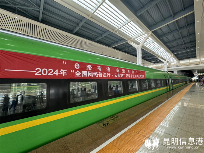 作为2024年“全国网络普法行·云南站”活动的亮点之一,以“e路有法 命运与共”为主题,在中老铁路昆明至磨憨段之间打造网络普法特色主题专列,是一次“走新”又“走心”的尝试,以线上线下相结合的宣传场景,营造浓厚的网络普法氛围。
