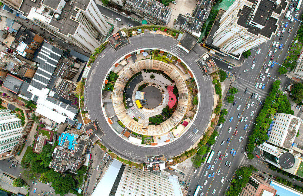 坐落在昆明市五华区人民中路上的傲城大厦,以其独特的圆筒形建筑风格、别具一格的观天视角,被人称为“天空之眼”,其名气在社交平台逐年响亮,成为昆明的知名地标建筑之一。今年暑假期间,傲城大厦吸引了越来越多的游客来此,于城市中心的方寸之间,寻觅“天空之眼”的奇特景观。