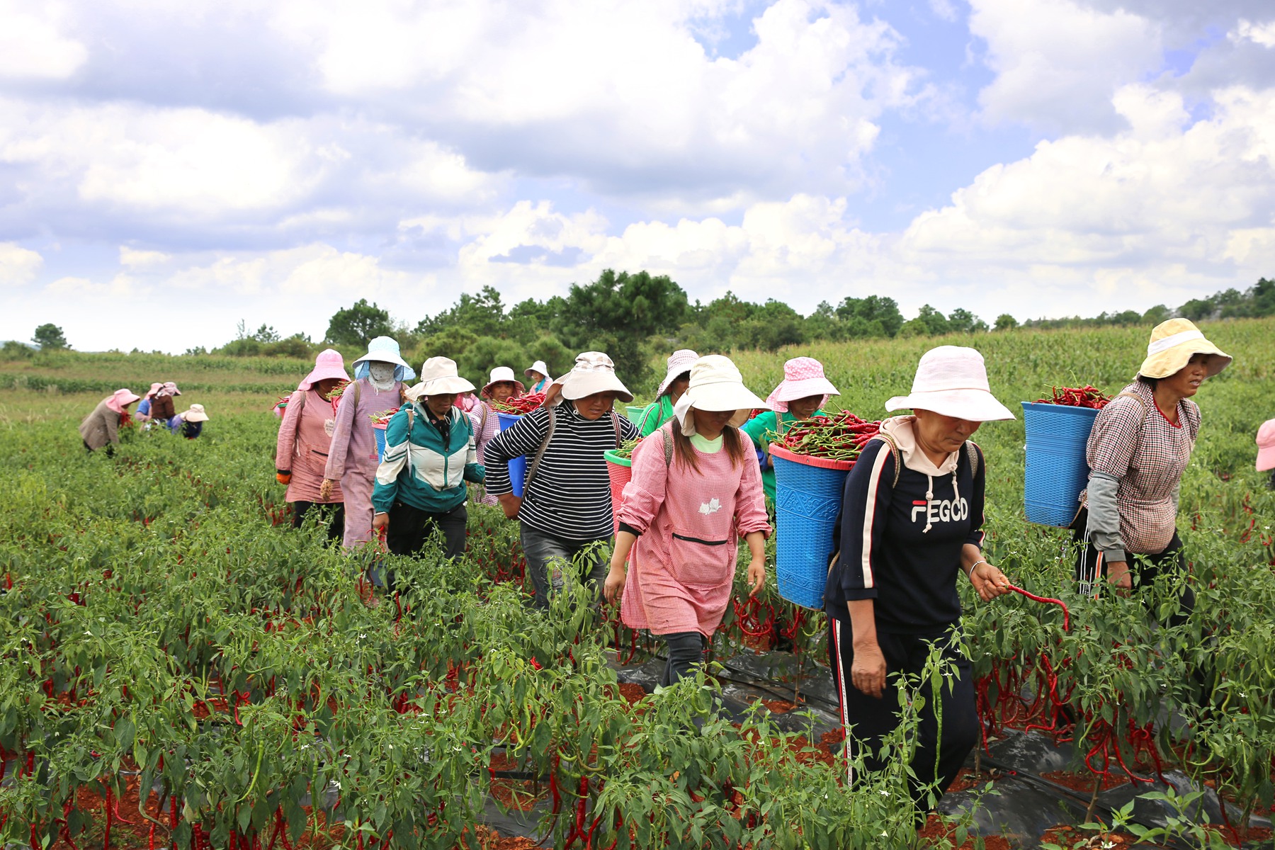 “八月下旬,辣椒进入采收期,我们基地每天都有40多人在此采收辣椒,每天可采摘辣椒约6吨,预计要采到11月下旬,每人每天100元,我今年采摘辣椒预计能收入5000余元。”在白龙洞辣椒种植基地参与采收的村民李桃介绍。