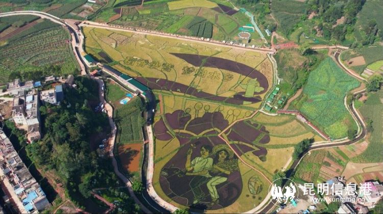 近年来,散旦镇在坚决扛实扛牢保护耕地、保障粮食安全的责任下,牢牢守住耕地红线,确保粮食丰产丰收,并以“农业+旅游+文化+品牌+农耕”的发展思路,完善产业化发展体系,优化农业观光旅游布局。其中,沙营村农业自然条件优越,多年来一直是水稻种植的优势区域。2022年沙营村农旅融合项目启动,建立“党总支+合作社+基地+农户”模式,集中流转近200亩水田发展彩色水稻种植,在稻田里“绘制”出惟妙惟肖的稻田图景。除了发展彩色水稻种植示范区,依托富民县全国农业科技现代化先行示范县建设,沙营村还探索建立了水稻、鱼、虾共生的生态环保种养模式,建设稻鱼共生养殖区、小龙虾莲藕共生养殖区,同时计划配建农耕农事体验区,打造乡村寓教于乐的新型旅游。目前,沙营清龙湾彩色稻田进入最佳观赏期,从空中俯瞰,由彩色水稻和常规水稻精心设计栽种而成的“稻香沙营 梦归水乡”图案在稻田里徐徐展开,一幅幅和美乡村画卷跃然眼前。