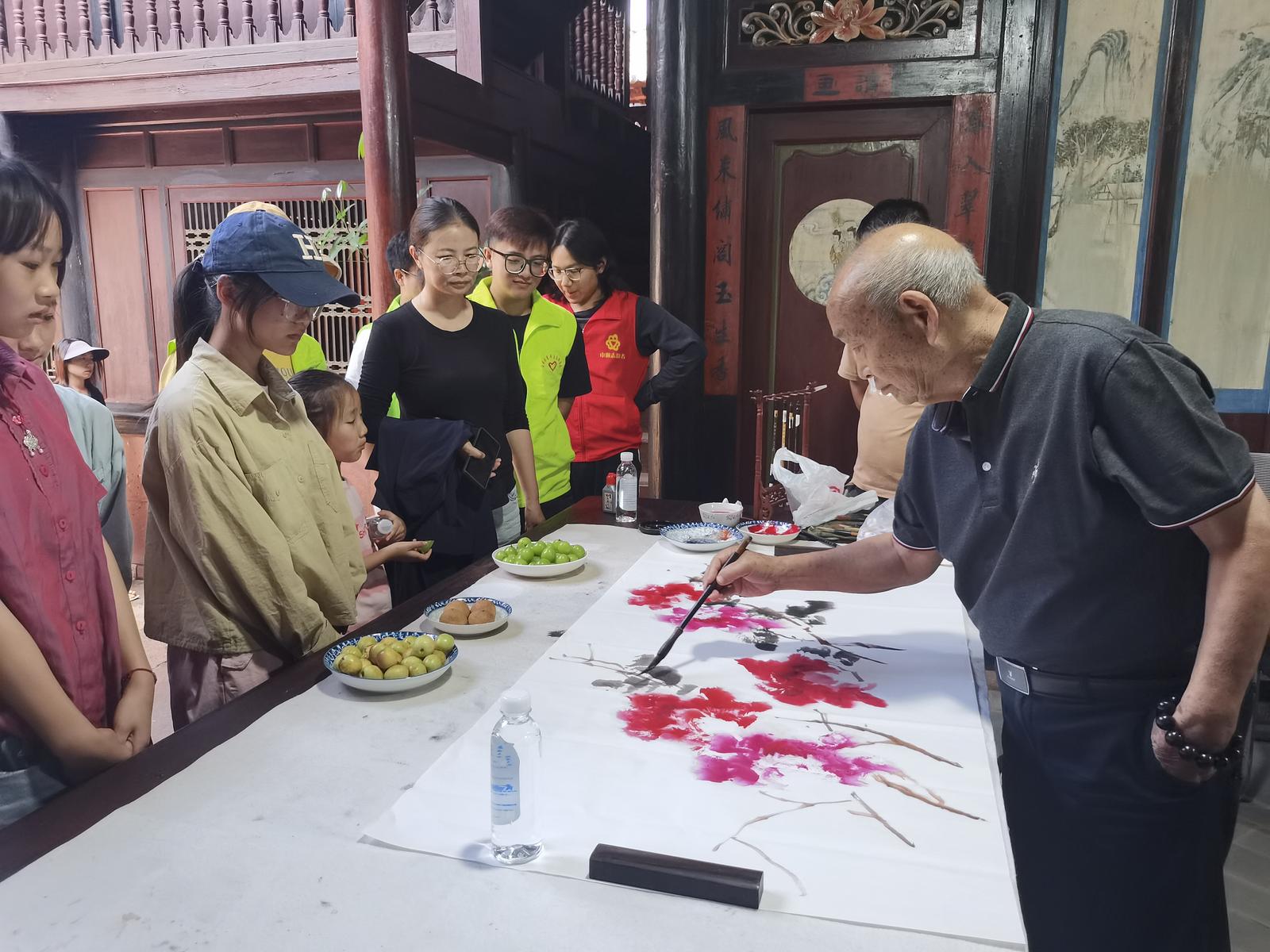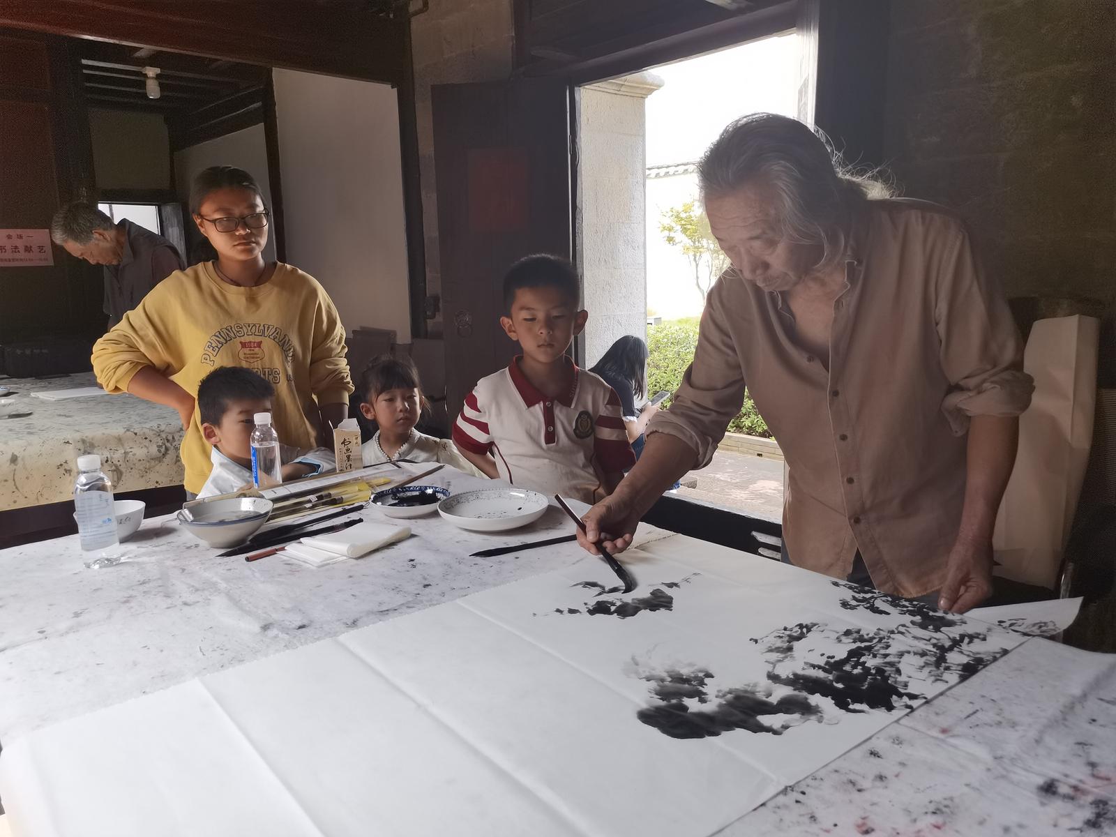 在清幽古朴的碧溪社区党群服务中心内,50余名孩童身穿汉服,正在认真听讲。通海书法家协会的林启龙老师分别用篆、隶、草、行等书体写下“碧”“溪”等字,并赏析字体结构、介绍碧溪的由来历史,陶冶孩子们的情操,在孩子心中种下爱祖国爱家乡、爱书法的种子,也勾勒出诗和远方。