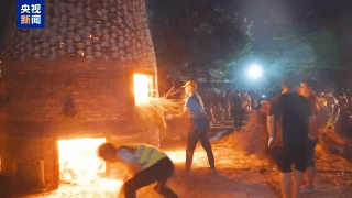 佛山市烧番塔非物质文化遗产传承人 陈永锦:到八月十五中秋节都有风俗,烧“番塔”,人们把它当作祈福的一个方法。希望生活一天天好,一年一年好,生活得红红火火。下面有底直径是一米八,把它团团圆圆砌起来,收到上面的口,80厘米左右,火就容易烧,火焰这样就高了。
