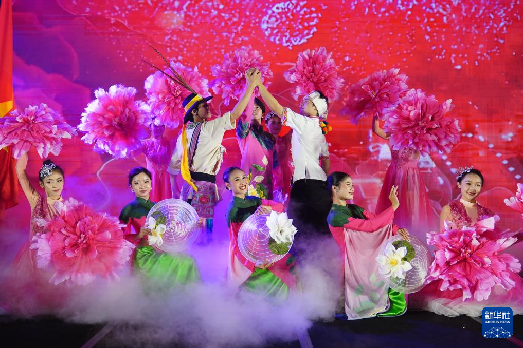 9月16日,在越南胡志明市,艺术家在中越跨国中秋晚会上表演。新华社发(云南省人民政府新闻办公室供图)