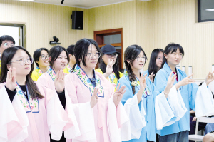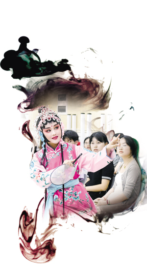 云南大学学生学习滇剧表演。记者杨艳辉摄