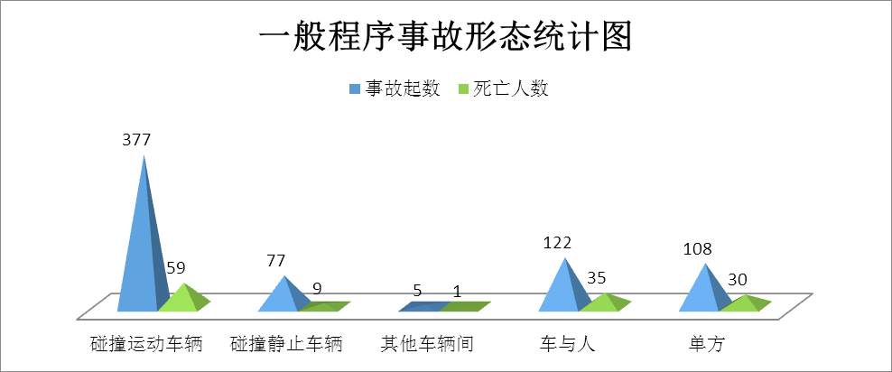 (四)碰撞运动车辆事故多发。碰撞运动车辆事故占国庆事故的54.72%(如图7所示)。高速公路以追尾碰撞事故为主,普通国省道主要以车辆之间的侧面碰撞、正面碰撞事故为主。