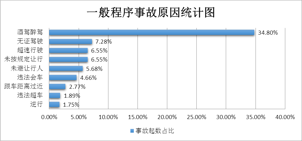 (五)酒驾醉驾、无证、超速等严重违法行为引发事故突出。酒驾醉驾、无证驾驶、超速行驶、未按规定让行、未避让行人等重点违法行为肇事突出。其中,酒驾醉驾肇事居首位,占总量的34.08%(如图8所示)。节日期间酒驾醉酒肇事占比高于平时(33.8%)0.28个百分点。