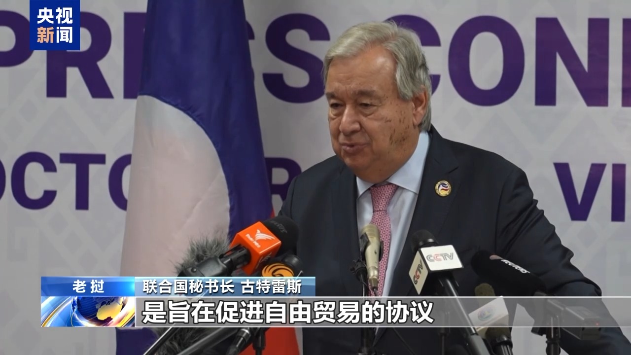 联合国秘书长古特雷斯在回答总台记者提问时赞赏中国—东盟自贸区3.0版,表示此次升级将促进全球自由贸易和经济增长。