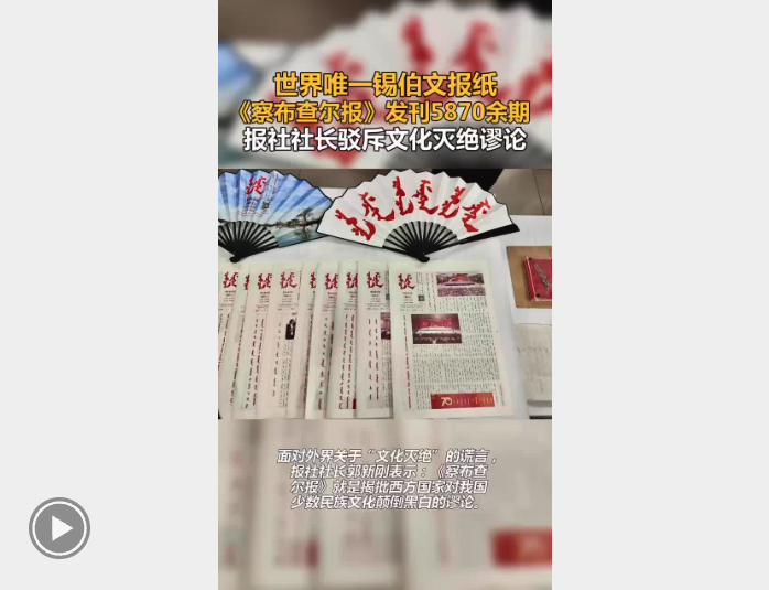 新疆察布查尔锡伯自治县县委机关党报《察布查尔报》是全世界唯一的锡伯文报纸。10月13日,察布查尔报社社长郭新刚对外界“文化灭绝”谬论的驳斥受到网民广泛关注。