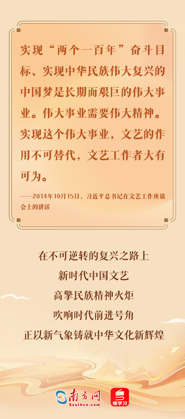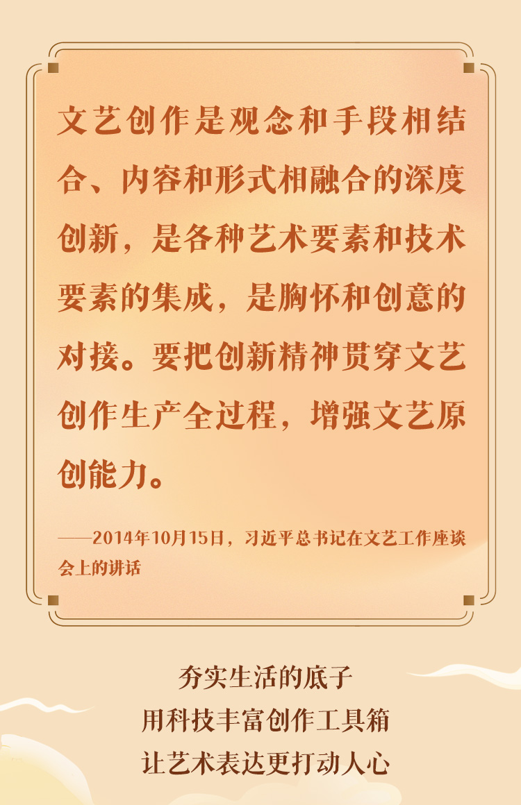 文艺事业是党和人民的重要事业,文艺战线是党和人民的重要战线。2014年10月15日,习近平总书记主持召开文艺工作座谈会并发表重要讲话,为推动新时代文艺繁荣发展指明了前进方向。文艺是时代前进的号角,最能代表一个时代的风貌,最能引领一个时代的风气。十年来,在习近平总书记的指引下,我国文艺面貌发生深刻变化,一系列代表性作品、标志性现象和时代性特征,勾画了新时代文艺的独特景观,彰显了新时代文艺的丰富内涵。