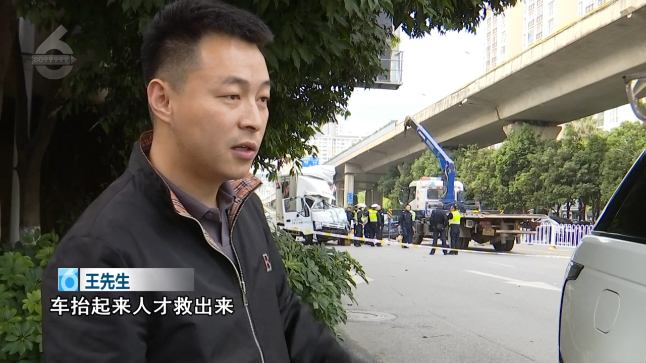 王先生:“我们所有人帮他推车,把货物收拾了,车抬起来人才救出来。”
