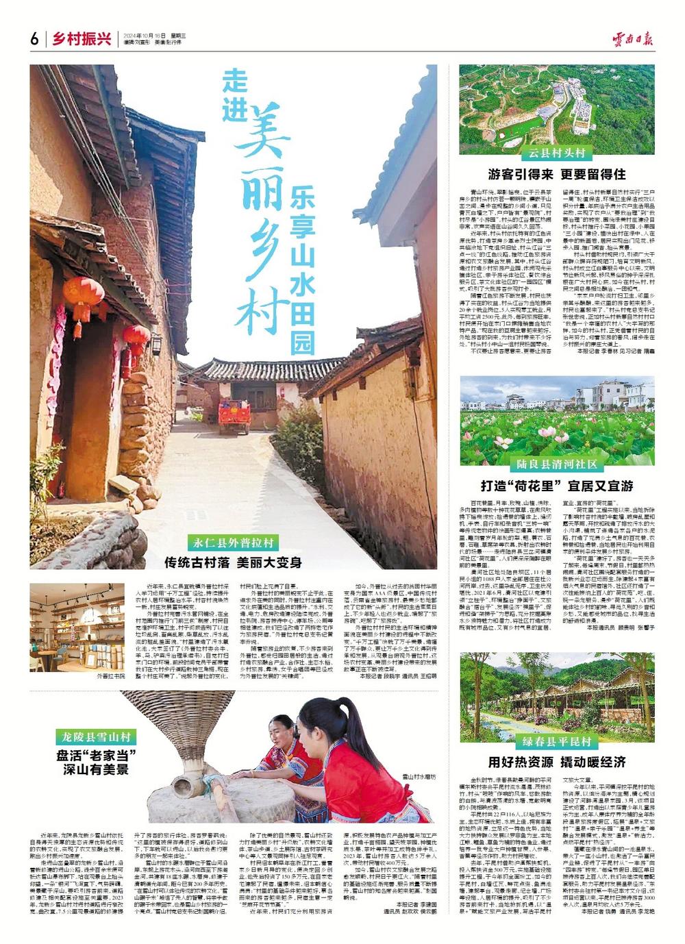 “家家户户轮流打扫卫生,邻里乡亲其乐融融,来这里的游客越来越多,村民也富起来了。”村头村党总支书记张世忠说,正如村头村新寨自然村村口“我是一个幸福的农村人”大字写的那样,如今的村头村,正凭借着村民的自治与努力,迎着旅游的春风,阔步走在乡村振兴的康庄大道上。(记者李春林 见习记者隋鑫)