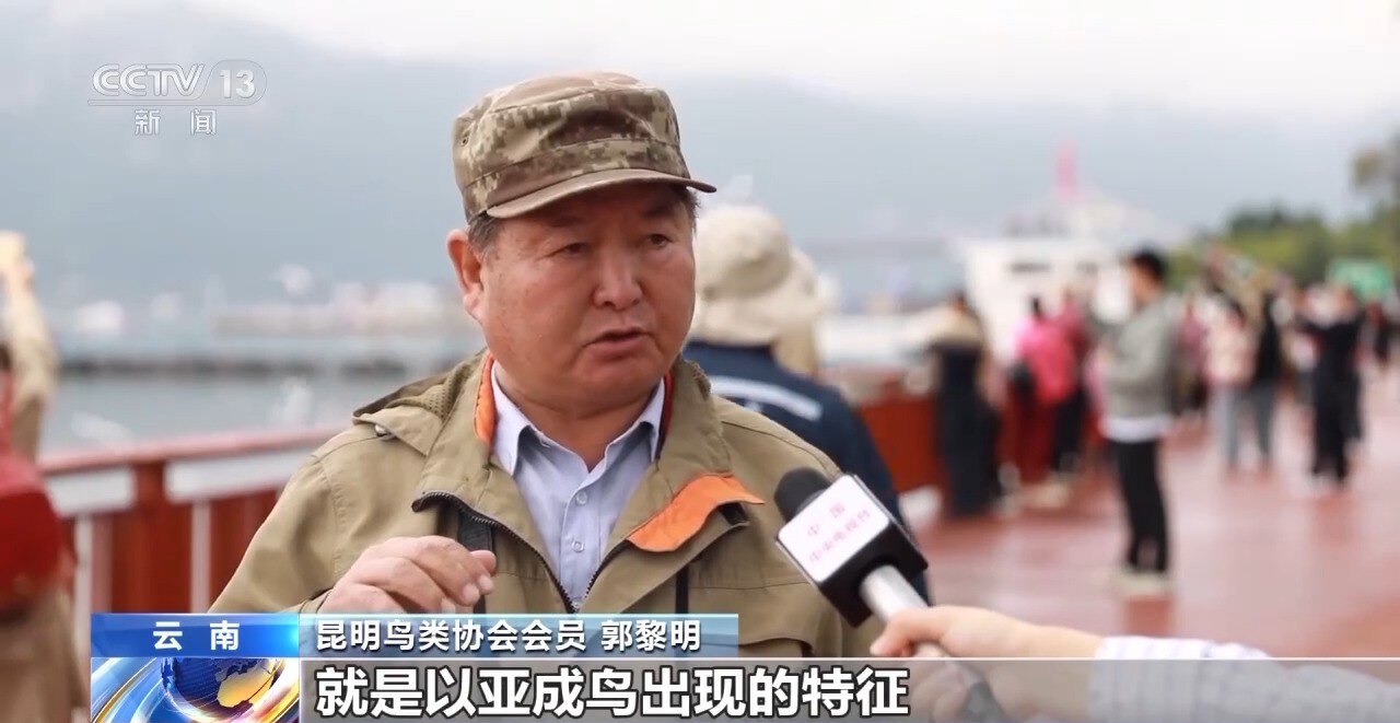 昆明鸟类协会会员 郭黎明:观鸥就是要注意,不要惊扰它,不要伤害它,不要用手去抓它,保持距离,喂鸥的时候放到平台上或者抛到空中都可以。