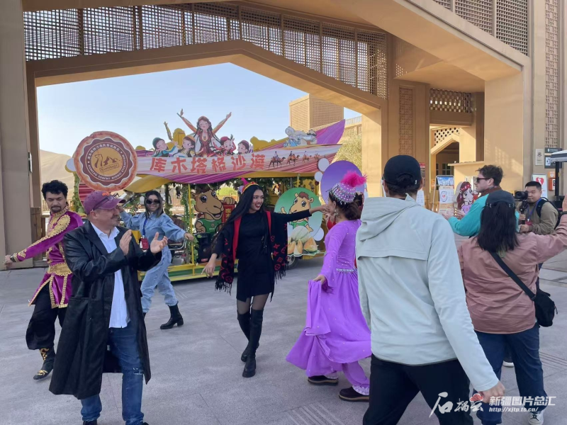 欢快的音乐,热情的邀约。在鄯善县库木塔格沙漠风景名胜区,伴随着欢快的音乐,演员们跳起热情的麦西热甫,自媒体创作者们被新疆舞的魅力所感染,跟随着节奏情不自禁地跳了起来。