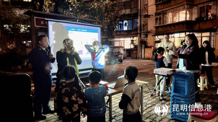 昆明信息港讯 记者上官艳君 11月1日,昆明市盘龙区消防救援大队联合东华街道席子营社区居委会在席子营社区一期开展“院坝课堂”。