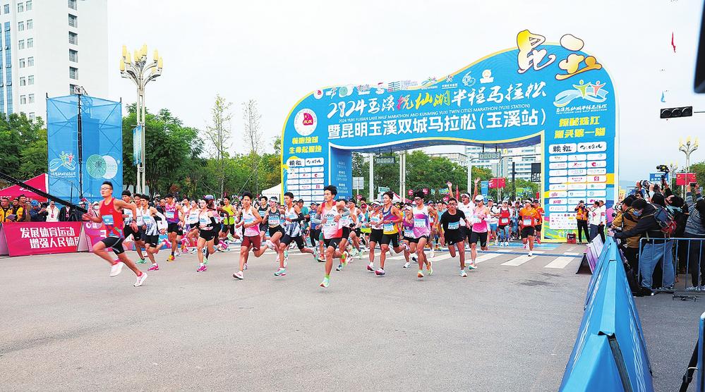 11月3日上午,2024玉溪抚仙湖半程马拉松暨昆明玉溪双城马拉松(玉溪站)在澄江市鸣枪起跑。作为中国田径协会A1类认证赛事,本次赛事以“畅跑地球生命起源地·探秘珠江源头第一湖”为主题,设置半程马拉松(21.0975公里)和欢乐跑(3公里)两个项目,其中半程马拉松项目参加人数为8000人,欢乐跑项目报名人数为2000人。