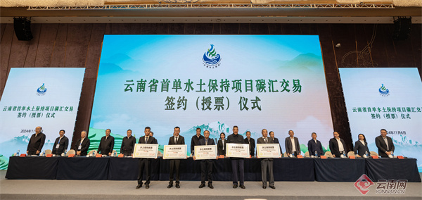11月6日,第五届中国水土保持学术大会在昆明召开。会上,云南省首单水土保持项目碳汇交易成功签约。此次交易曲靖市马龙区共转让水土保持碳汇量11.56万吨,金额381.48万元,平均每吨33元,为西南地区金额最大的水土保持项目碳普惠交易。