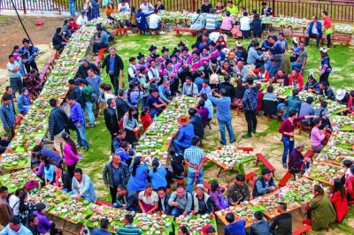 哈尼族长街宴。金家茂摄 图片由北京国际摄影周“中国稻作文化影像展”提供
