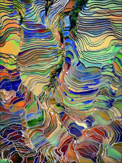 阳光下多彩的哈尼梯田。卢文摄 图片由北京国际摄影周“中国稻作文化影像展”提供
