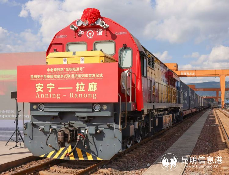 当日,“昆明陆港号”货运列车满载35车安宁制造的化肥、包装材料等工业产品,从中国昆明国际陆港安宁北港出发,经中老泰铁路送达老挝琅勃拉邦、泰国曼谷,并通过公路运输最终到达拉廊。同时,满载泰国特色水果的货运列车从泰国拉廊出发,经老挝万象,于11月20日到达安宁。这预示着中国昆明国际陆港通过中老泰铁路、公路、海港运输,联通缅甸、印度、孟加拉国、斯里兰卡等国家,在更大范围内畅通经济循环,推动中国昆明安宁与运输沿线国家互联互通,全方位交流,深层次合作,深度融入共建“一带一路”,携手互利共赢。