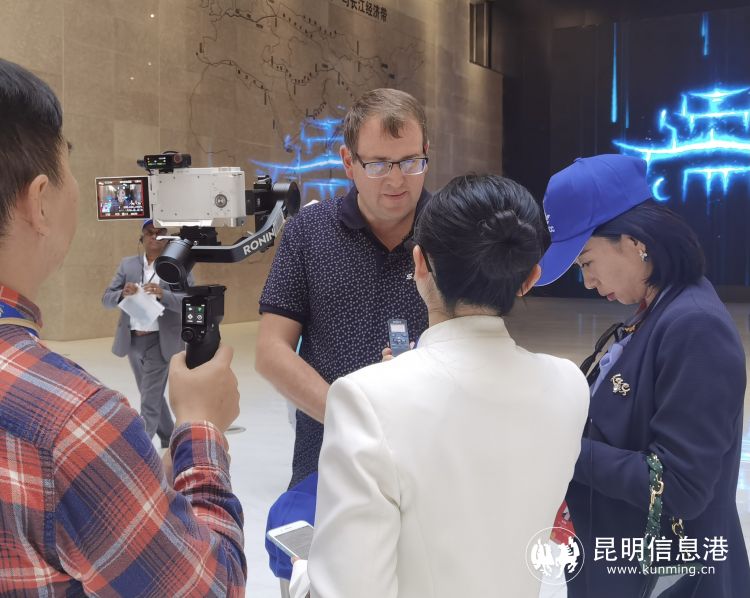 俄罗斯城市联盟总干事安德烈·马克西莫夫正在接受采访。昆明融媒体中心记者周玉珠/摄