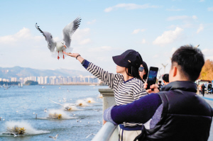 初冬时节,红嘴鸥从寒冷的西伯利亚等地大规模飞抵云南昆明,吸引大批游客前来观赏。新华社
